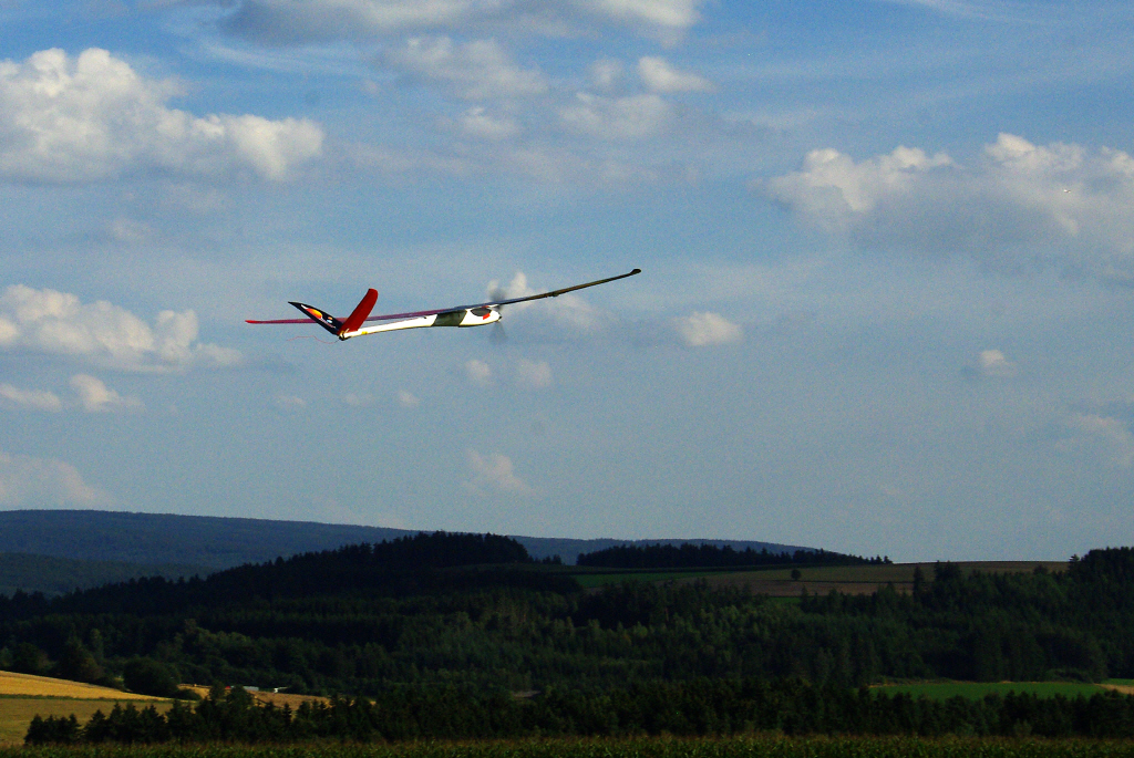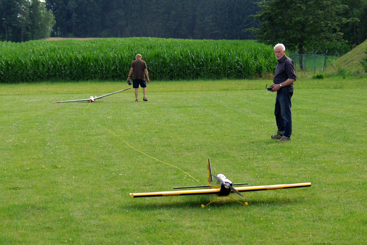 Heute war ein sehr interessanter Flugtag bei uns am Platz. Jochen wollte heute seinen neuen "Arcus" einfliegen. Heiner brachte extra seine Piper als Schleppmodell mit. Als dann endlich ein "freiwilliger" Schlepppilot gefunden war, gings auch schon los. Der erste Schleppversuch war schon wirklich vom "allerfeinsten". Leider hatten aber nur die Zuschauer ihren Spaß daran ;-)