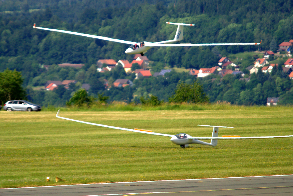 Heute konnte man Konrad´s Schleppkünste mit seiner Zlin bewundern. Bereits der erste Schlepp mit Heiner und seinem Bergfalken klappte schon recht gut. Bei der Landung fehlte Heiner allerdings die nötige Konzentration und er verfehlte knapp die Landebahn. Aber dank seiner fliegerischen Fähigkeiten wurde trotz Außenlandung nichts beschädigt und es konnte munter weitergeschleppt werden. Die Schlepps wurde immer besser, auch Heiner´s Landungen :-)